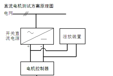 (1)開關(guān)直流電源與與泄放裝置在應(yīng)電機測試中的應(yīng)用方案,具體測試方案及電氣原理圖見下圖