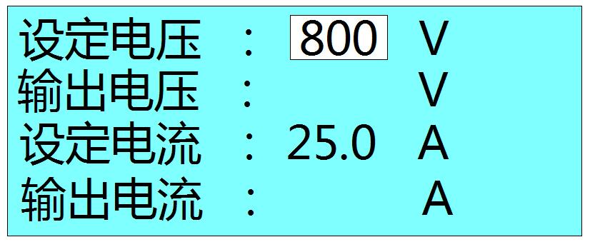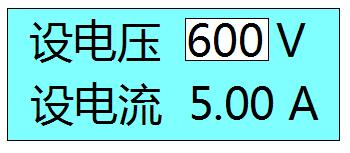 設(shè)置完成后按菜單鍵,界面回到電壓電流值設(shè)定界面,所有設(shè)置完畢