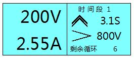 達到設(shè)定電壓后,進入保持階段,如下圖所示,另外界面同時顯示保持該階段的剩余時間以及所剩循環(huán)次數(shù)