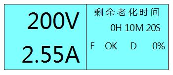 b)  工作在定時關(guān)機模式,界面如下所示,按照首屏設(shè)置的電壓電流值運行到設(shè)置好的老化時間后自動關(guān)閉電源設(shè)備的輸出