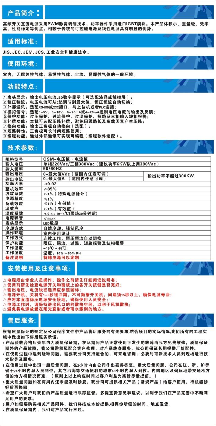 歐斯姆OSM系列污水處理脈沖直流電源-電壓電流可調